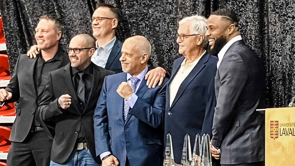 Photo: Matt Casavant / X – Les cinq nouveaux intronisés, de gauche à droite: Mark Simmons, Benoit Gaudet, Jean-François Bergeron, Russ Anber et Jean Pascal