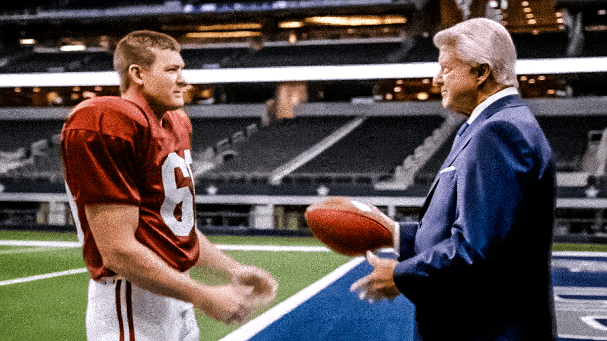 On a vu Jimmy Johnson, 81 ans, marcher lentement sur le terrain. Puis l’ancien coach s’est arrêté et l’Intelligence artificielle a pris la relève. Autant pour l’image que pour la voix de Johnson. Il s’est revu jeune joueur à 20 ans, rajeuni par l’IA, puis jeune assistant coach, puis coach à l’université et enfin coach avec les Cowboys de Dallas. Ses cheveux et son célèbre toupet épais passant du noir au blanc.