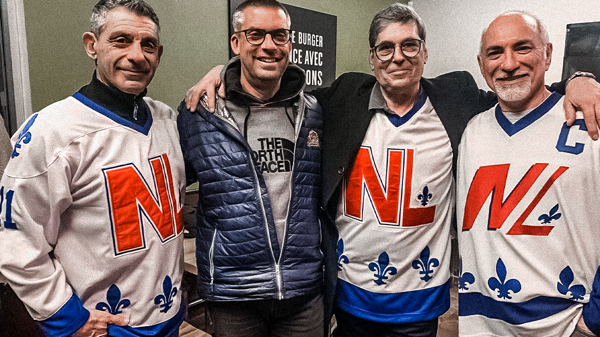 Il était avec Éric Hoziel et Robert Marien. Mac Templeton et le capitaine Robert Martin. Les trois avaient enfilé le chandail du National de Québec et jasaient avec des fans de Lance et Compte.